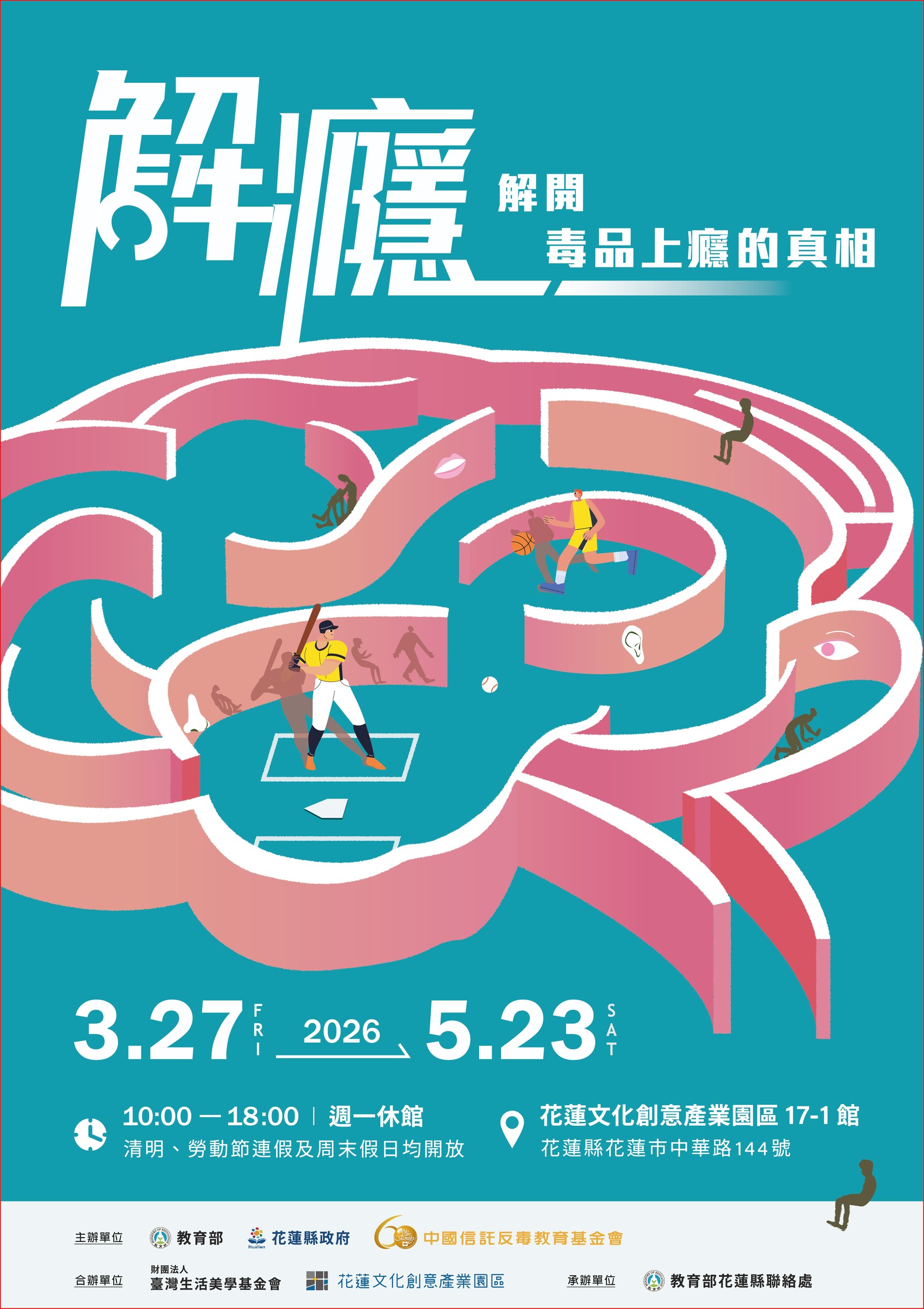 教育部花蓮縣聯絡處辦理115年「解癮-解開毒品上癮的真 相」反毒教育特展,請各單位踴躍報名參加