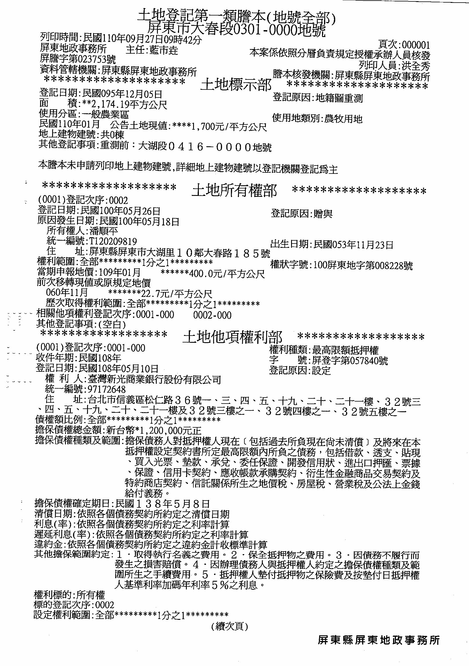 屏東市公所代為公告本市大春段0301地號私人土地無主骨骸遷葬公告 地籍謄本.jpg