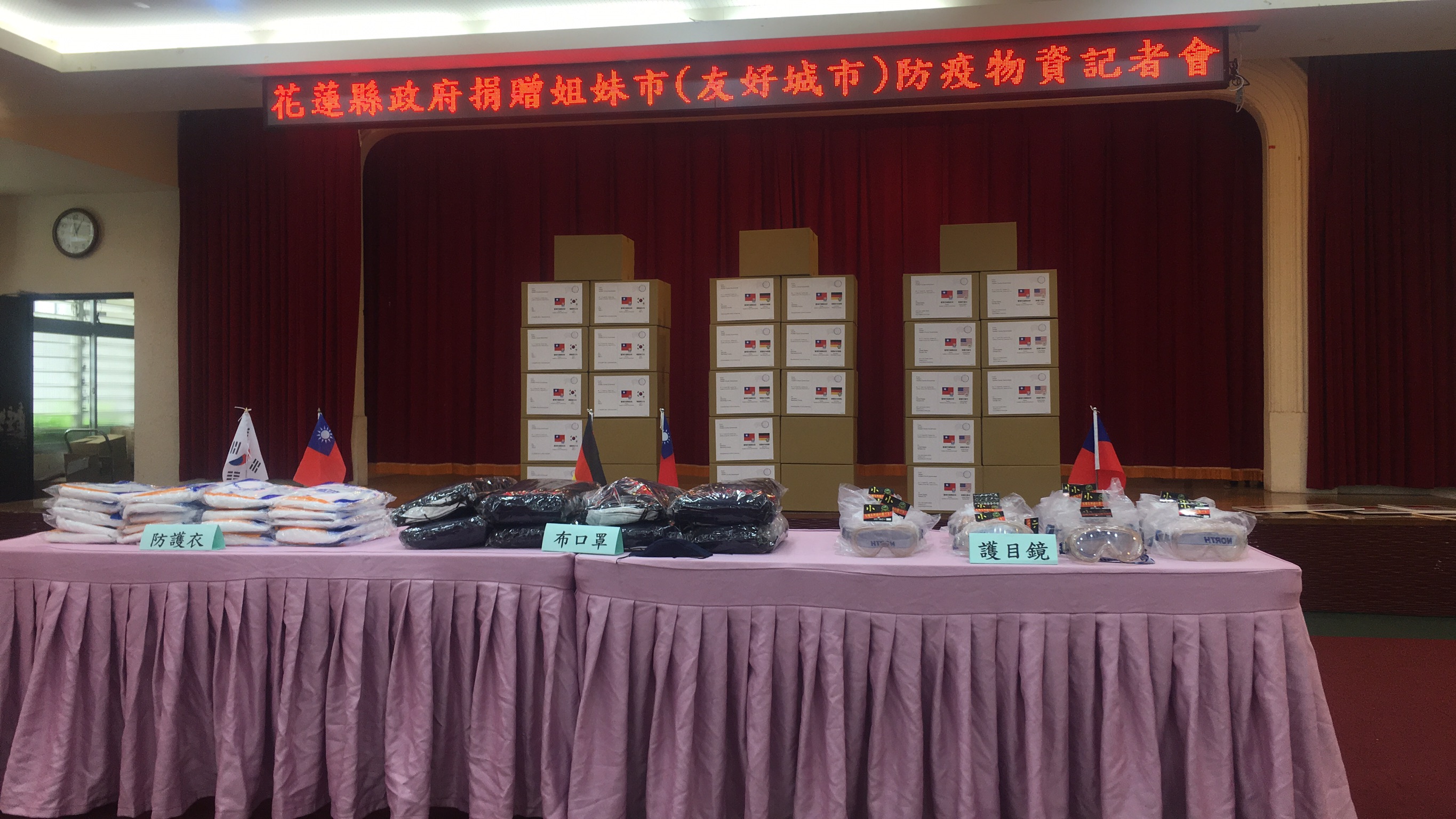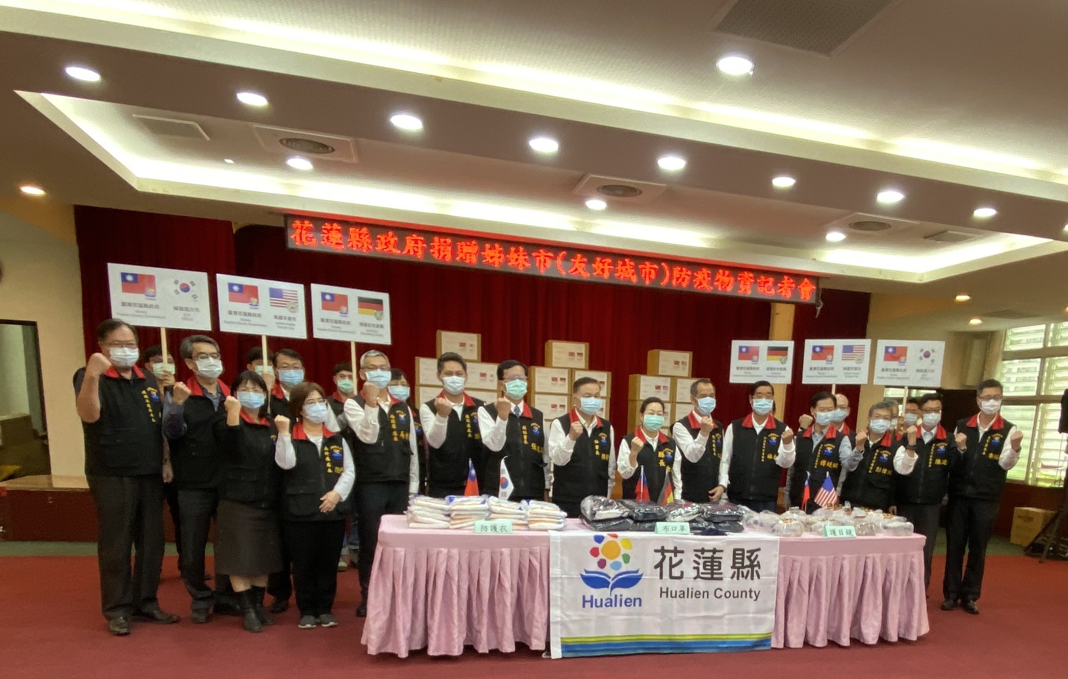 「We are family, we can help!」新冠肺炎疫情來襲,全球各城市共同面臨嚴峻考驗,花蓮縣政府今(23)日整備口罩套9,000個、護目鏡及防護衣等各項防疫物資,回應德國巴伐利亞邦史坦堡縣等友好城市的迫切需求。縣長徐榛蔚表示,縣府團隊與地方各界齊心防疫,花蓮縣迄今維持零確診個案,即日起展開國際人道援助行動,陸續與3個友好城市分享防疫物資及相關作為,以期攜手共度難關。